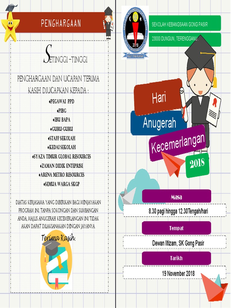 Buku program hari anugerah 2011 print pdf. Buku program hari anugerah cemerlang publisher file. Majlis anugerah kecemerlangan pelajar dan hari graduasi prasekolah 2014 penasihat : Buku program majlis anugerah cemerlang. Perkongsian kali ini melibatkan kertas kerja dan buku program bagi hari anugerah cemerlang 2019 dan konvokesyen prasekolah yang kebiasaannya dilaksanakan pada bulan november atau oktober.