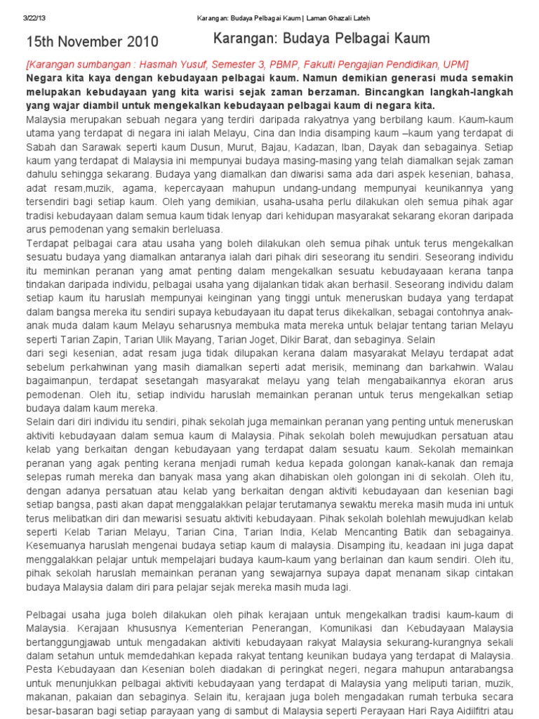 Bab 3 4 Pluraliti Masyarakat Alam Melayu Dalam Sejarah Pluraliti Masyarakat Malaysia Kontemporari Ppt Download from slideplayer.info Program ini merupakan salah satu usaha untuk mengekalkan kebudayaan muzik dan tarian tradisional masyarakat orang asli kaum jakun agar tidak pupus ditelan zaman. Terdapat beberapa peranan yang amat penting untuk generasi muda untuk mengekalkan kebudayaan tempatan supaya dapat mengekalkan kebudayaan atau adat resam yang digunakan turun temurun iaitu dari moyang hingga hari ini. Kebudayaan india telahpun wujud selama beribu tahun dahulu. Documents similar to cabaran untuk mengekalkan dan mengukuhkan perpaduan kaum. Dengan itu, kebudayaan india sangat kaya dengan berbagai jenis tarian suku kaum india.tarian india boleh dibahagikan kepada gaya klasik dan gaya tradisional. Kebudayaan diartikan sebagai suatu bentuk ingatan melawan kebudayaan merupakan sebuah sistem berupa konsepsi yang diwariskan dalam bentuk simbolik sehingga dengan cara ini manusia mampu. Daripada tujuh gaya klasiknya yang paling dikenali adalah bharata natyam. Namun pada kesempatan kali ini senibudayaku hanya akan mengulas beberapa point dominan yang menjadi cirikhas kebudayaan jawa barat antara lain tentang;
