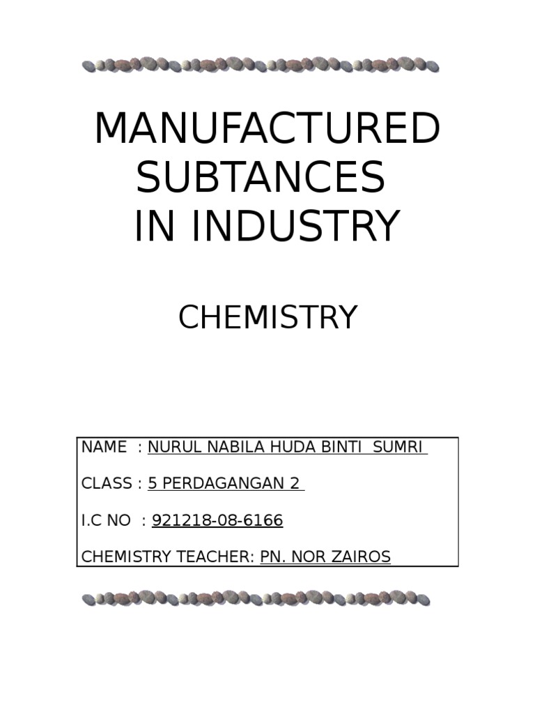 Related : Manufactured Substances In Industry - Manufactured substances in industry aini natasha bt hussain nur zur'aina bt mohd rashidi nur aida dayana bt nor ariffin nur sofia elissa bt mohd rofi athirah nadeera bt azrul niza..