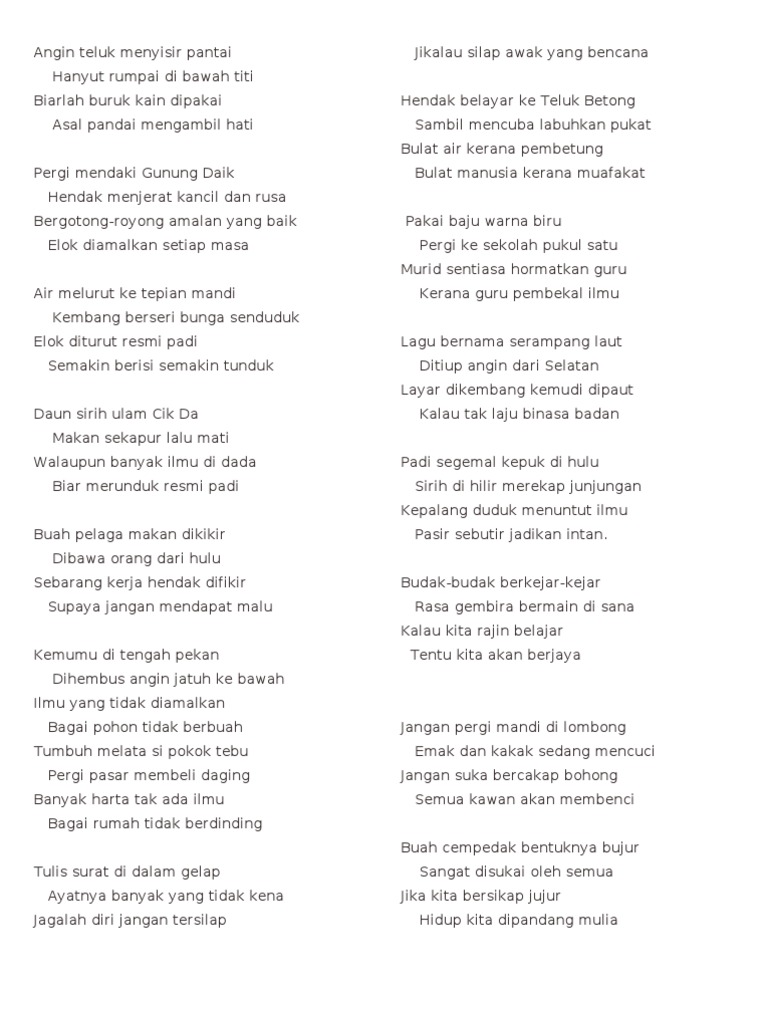 Pantun enam kerat januari 18, 2008 dalam koleksi pantun melayu. Rostinah bagi pantun 2 kerat. Penggunaan pantun dalam komunikasi zaman dahulu melambangkan kehalusan akal budi dan ketinggian adab seseorang. Pantun dalam bentuk pantun 2 kerat 4 kerat 6 ataupun 10 kerat adalah sebahagian daripada kesenian bahasa dalam budaya masyarakat nusantara samada untuk adat istiadat nasihat pendidikan gurauan hiburan majlis keramaian dan juga dalam perbualan harian perbezaan pantun dengan. Pantun enam kerat (nilai insan) silang kata. For more information and source, see on this link : Contoh soal dan materi pelajaran 6 contoh pantun 4 kerat nasihat. Puisi tradisional tingkatan 4 pantun empat kerat budi nota spm tatapan minda. Power point lagu benci dadah wshahir. Bahasa melayu tingkatan 2 surat tidak rasmi. Puisi tradisional tingkatan 4 pantun empat kerat budi nota spm tatapan minda. For more information and source, see on this link : 100% (5) 100% found this document useful (5 votes) 45k views 22 pages.