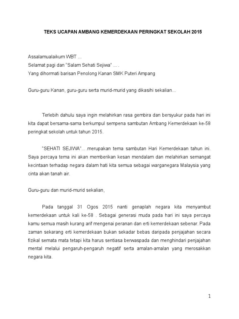 Teks Ucapan YB Menteri Pendidikan Sempena Majlis Perutusan ... from image.slidesharecdn.com Teks pengacara majlis sambutan hari kemerdekaan, smtpjb. Pada hari tersebut juga sering disebut seba. Ya, proklamasi kemerdekaan indonesia dilakukan pada hari. Semarakan hari kemerdekaan dengan menyampaikannya melalu pesan singkat dengan kata kata ucapan hari kemerdekan 17 agustus berikut ini 10 ucapan hari kemerdekaan. Perjuangan para pahlawan meraih kemerdekaan indonesia tentunya bukanlah hal mudah. Kemerdekaan indonesia ini tentunya memiliki makna yang sangat besar bagi seluruh warga indonesia. Sang saka merah putih berkibar. Perumusan teks proklamasi dilakukan di rumah laksamana tadashi maeda, yang sekarang menjadi museum perumusan naskah proklamasi.